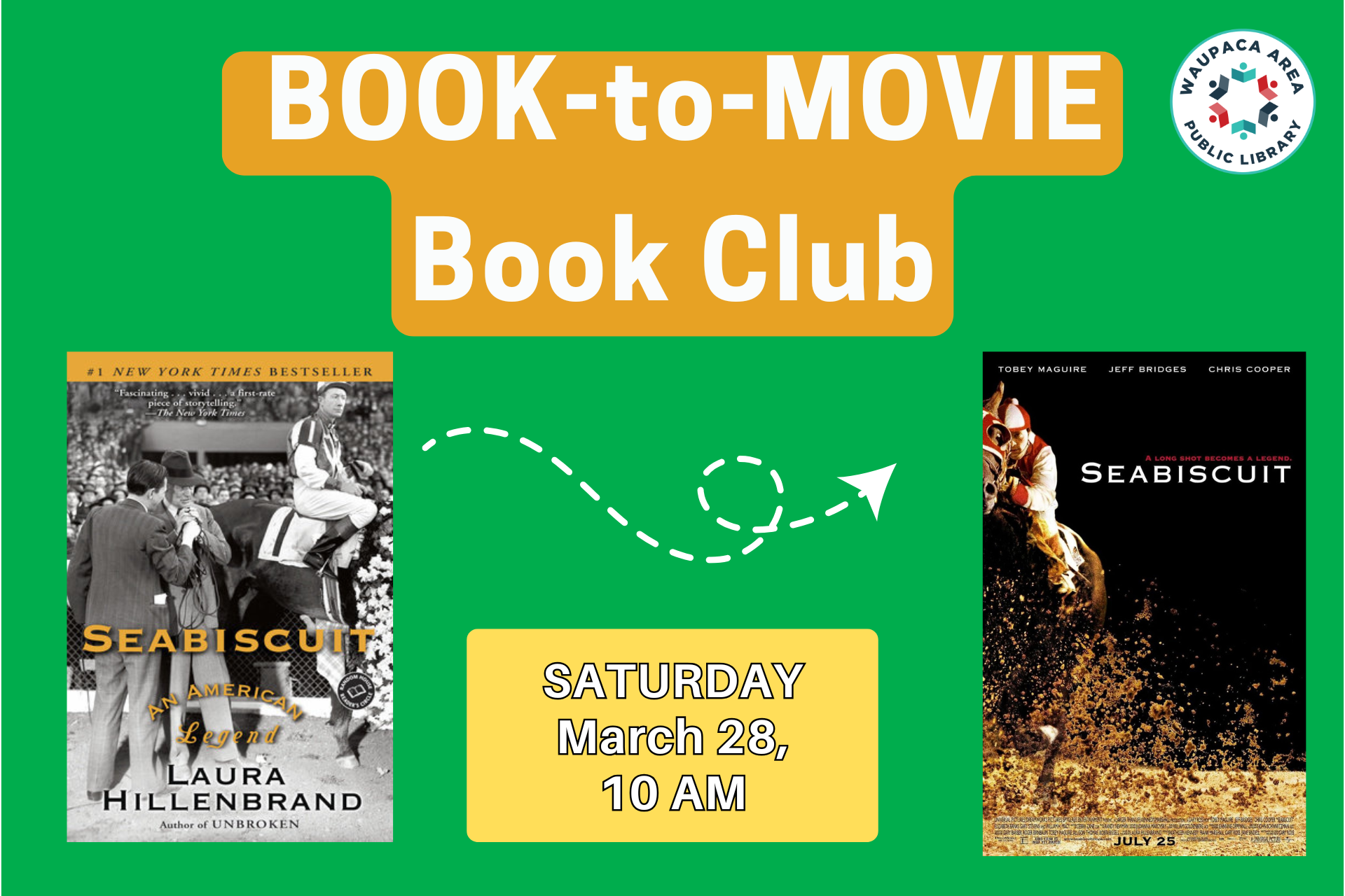 Read along and then watch, “Seabiscuit” for our next club meeting! Compare, contrast, and come ready for casual discussion and viewing of this classic.