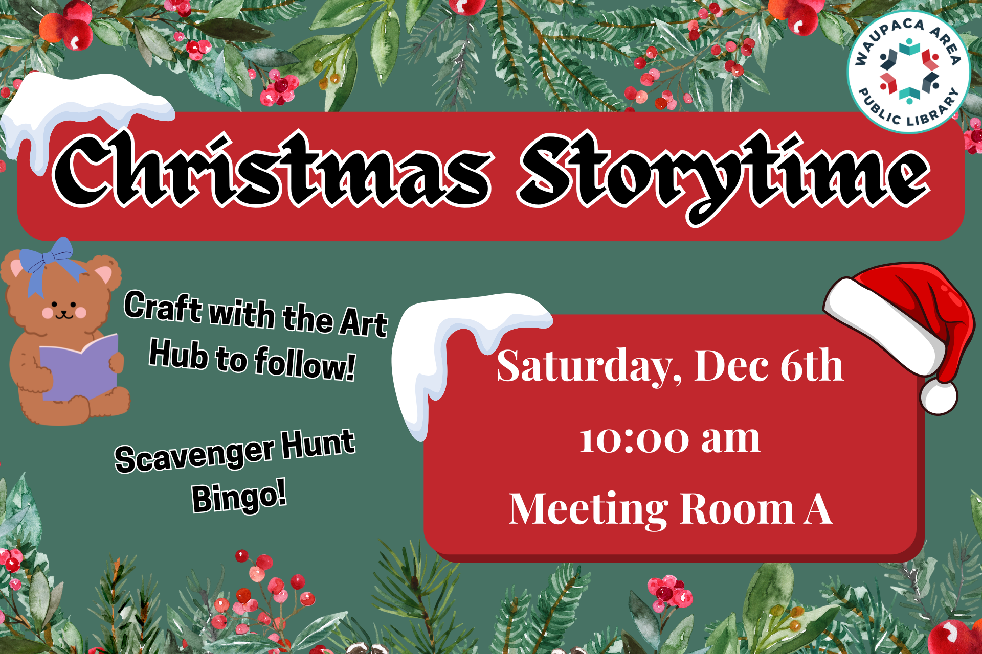 Stick around for fun in the library afterwards, with a craft hosted by the Waupaca Arts Hub and a holiday scavenger hunt bingo!