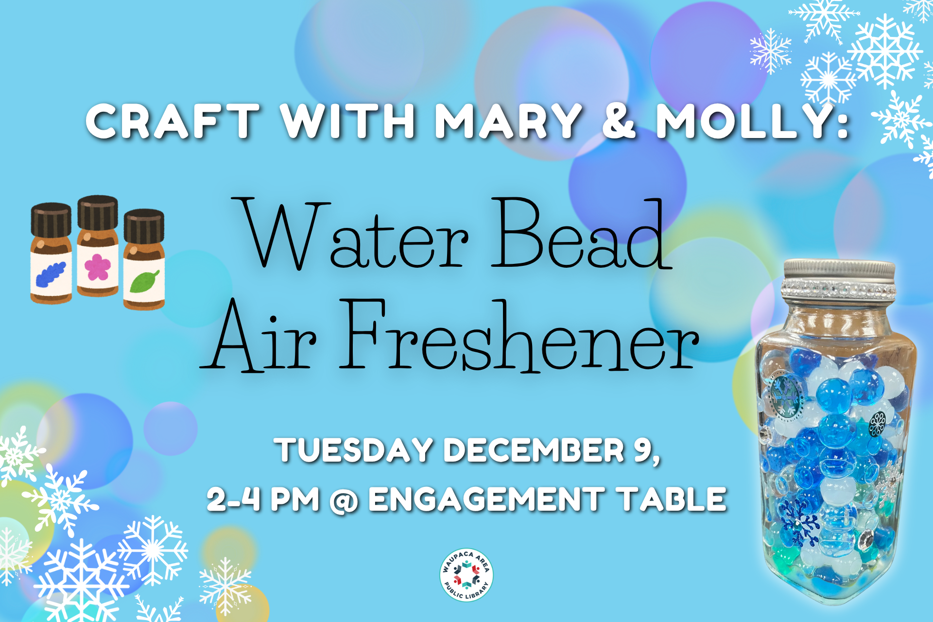 Join us for another crafting afternoon with Mary and Molly at the Engagement Table. This month we’re making water bead air fresheners, perfect for keeping or gifting! Drop in any time between 2-4pm, can’t wait to see you there!