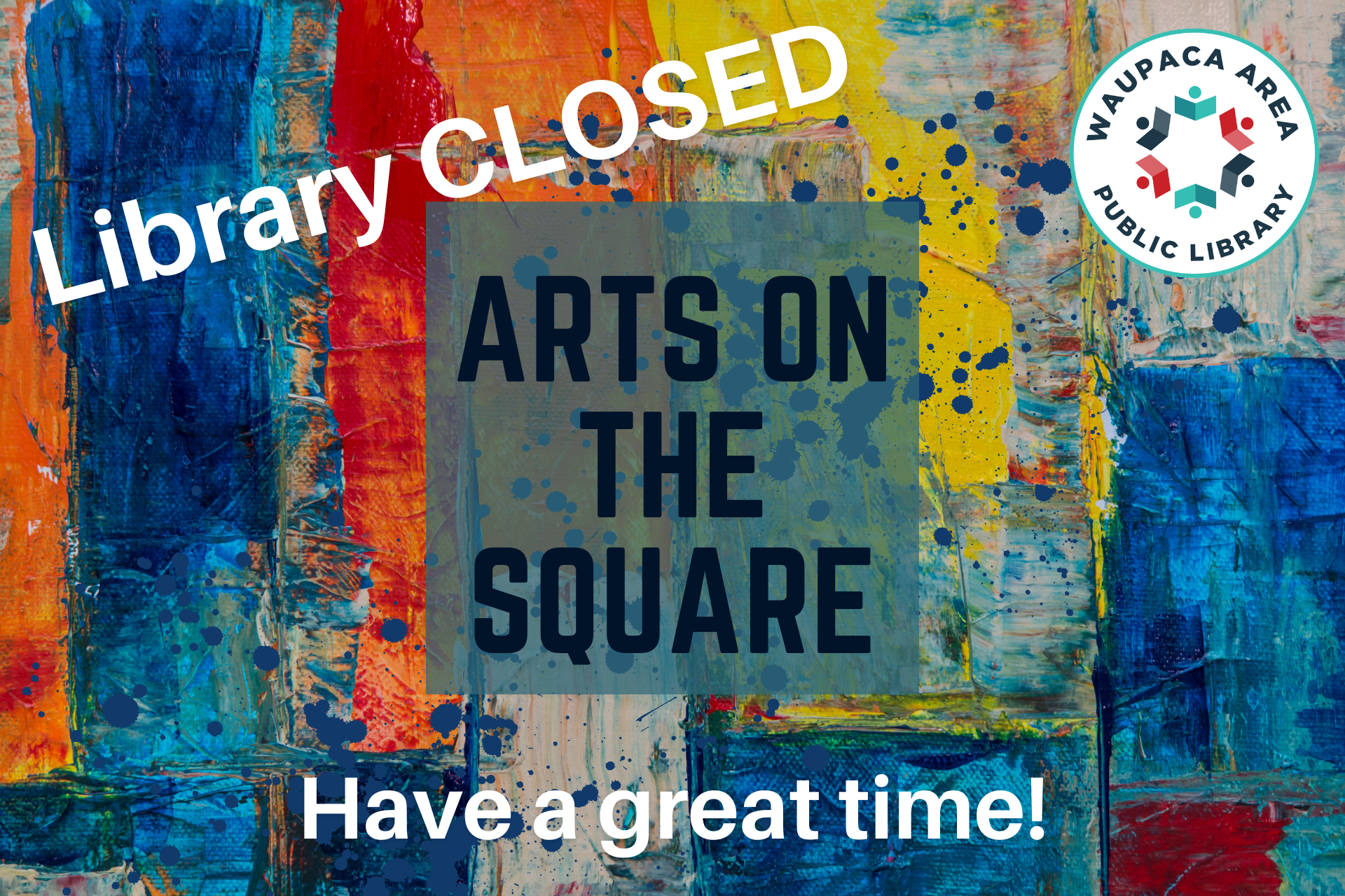 Category AdultExhibitKids and FamilyTeen Date Aug 16 2025 Expired! Time All Day LIBRARY CLOSED-Arts on the Square The library is closed today while we enjoy Arts on the Square on the City Square Share this event + Add to Google Calendar + iCal / Outlook export