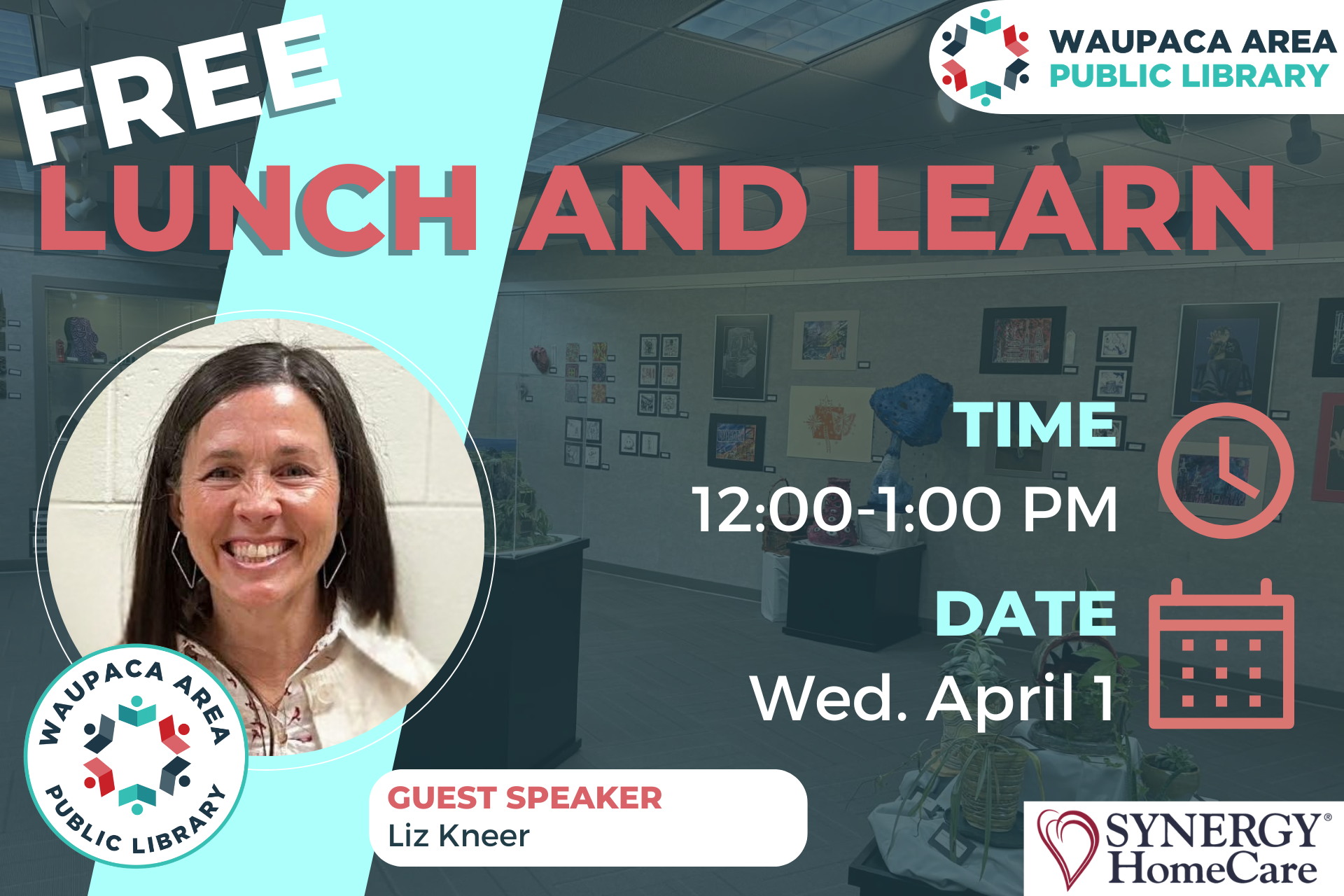 Come hear from Liz Kneer, Exhibit Room Coordinator at Waupaca Public Library. She’ll share about her job, the Library Foundation and more!