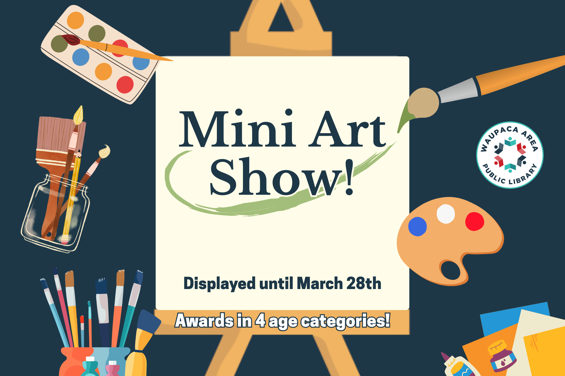 Bring a 4×4″ piece of art to be displayed at the library!