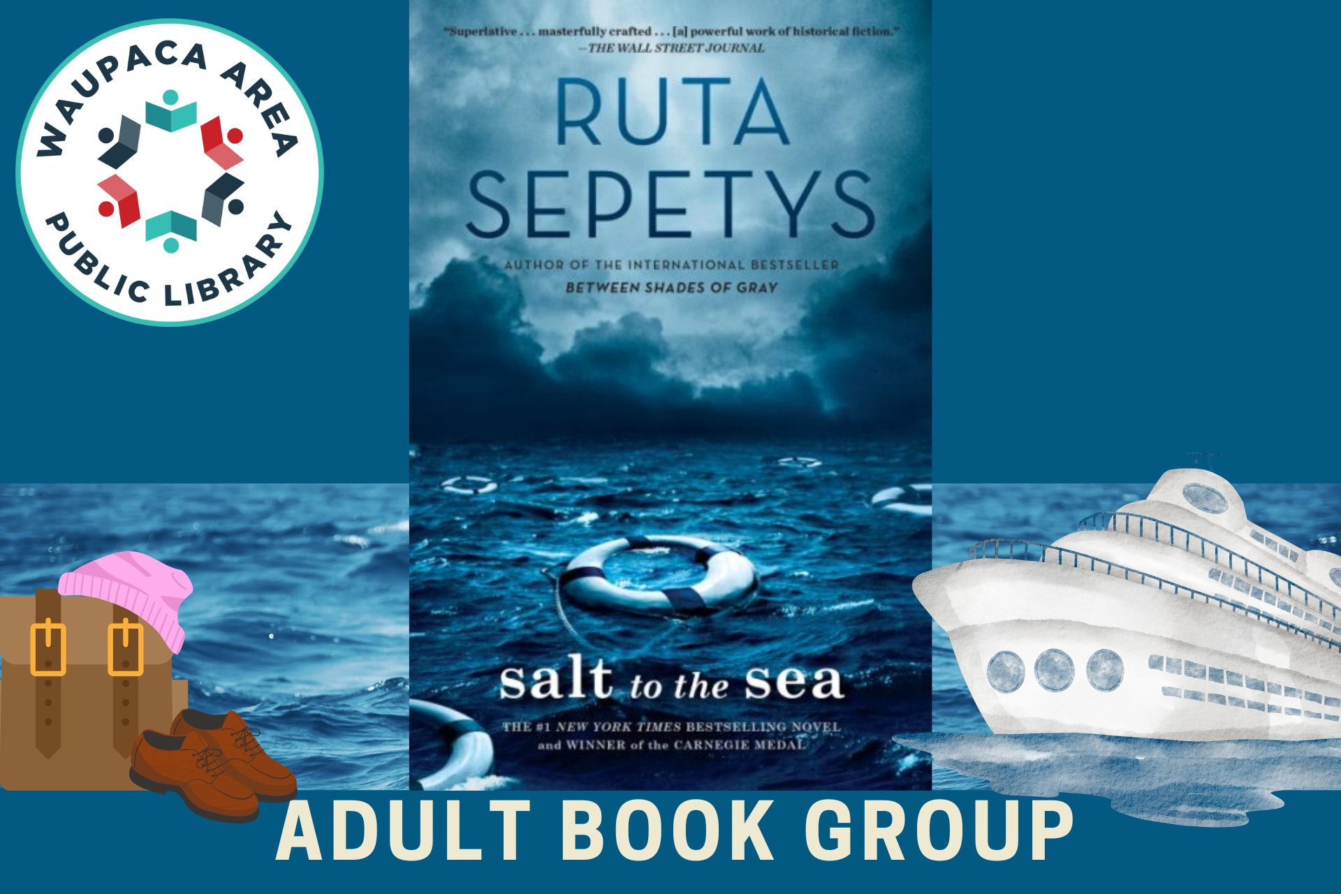 Category AdultBook Discussion Date Jun 20 2025 Expired! Time 10:00 am - 11:00 am Book Club: Salt to the Sea Join us the 3rd Saturday of each month 10 am June 20: Salt to the Sea by Ruta Sepetys ***FRIDAY June 20th due to Strawberry Fest*** July 19: Unwanted Guest by Shari Lapena Link to join for June: Join Zoom Meeting https://us02web.zoom.us/j/83854403623?pwd=D1gaLNUVItWPeGlMk5TrapKSciunl3.1 Meeting ID: 838 5440 3623 Passcode: 221548 Share this event + Add to Google Calendar + iCal / Outlook export