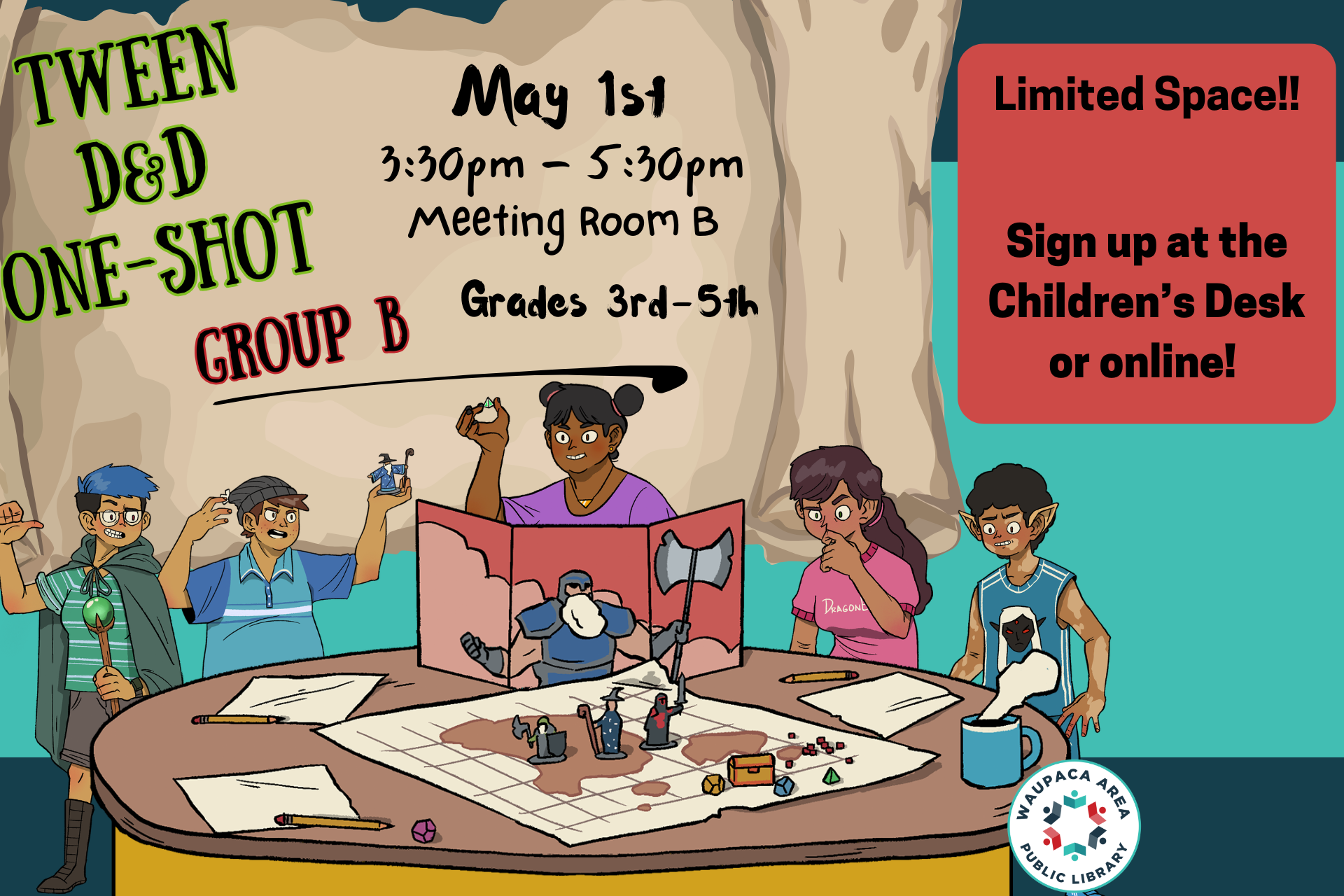 This event is offered as backup date from Tween D&D on April 24th. If you have signed up for D&D on the 24th, please do NOT sign up for this event!