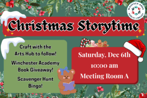 Library Events Grid View | Calendar View 18 October - 06 December All Day AdultExhibit World War I: Lessons and Legacies Exhibit 02 December 4:00 pm - 5:00 pm Teen T.V.A (Teen Volunteer and Advisory Agents) Meeting 03 December 10:00 am - 11:00 am Kids and Family Story Time 03 December 12:00 pm - 1:00 pm Adult Lunch and Learn: Madrigal Singers 03 December 2:30 pm - 5:00 pm Kids and Family Afterschool Wednesday Activity 03 December 3:00 pm - 5:00 pm Teen Teen Dungeons and Dragons One-Shot (Registration Required) 05 December 6:00 pm - 7:30 pm Kids and Family Interactive Christmas Movie 06 December 10:00 am - 11:00 am Kids and Family Christmas Storytime 08 December 4:00 pm - 5:00 pm Kids and Family Kids’ Lego Contest 09 December 2:00 pm - 4:00 pm Adult Craft with Mary & Molly 10 December 10:00 am - 11:00 am Kids and Family Story Time 10 December 2:30 pm - 5:00 pm Kids and Family Afterschool Wednesday Activity No event found! Load More