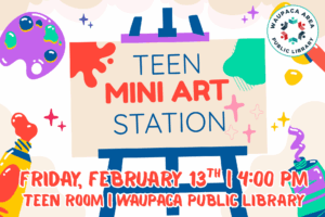 Library Events Grid View | Calendar View 12 January - 28 March 9:00 am - 2:00 pm AdultExhibitKids and FamilyTeen Mini Art Show 02 - 28 February All Day Teen Teen Drop-In Craft: Teen Zines 06 February 10:00 am - 11:00 am Kids and Family Babygarten 07 February - 28 March All Day AdultExhibitKids and FamilyTeen Youth Art Month Exhibit 09 February 6:00 pm - 7:00 pm AdultExhibitKids and FamilyTeen Youth Art Month Reception & Awards Ceremony 11 February 10:00 am - 11:00 am Kids and Family Story Time 11 February 2:30 pm - 4:00 pm Kids and Family Afterschool Wednesday Activity 11 February 3:00 pm - 5:30 pm Teen Teen Kandi Corner 12 February 5:00 pm - 7:00 pm Adult Candle Making Workshop 13 February 10:00 am - 11:00 am Kids and Family Babygarten 13 February 4:00 pm - 5:30 pm Teen Teen Mini Art Station 18 February 10:00 am - 11:00 am Kids and Family Story Time No event found! Load More