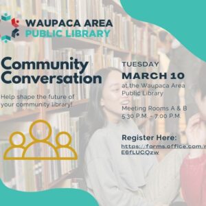 Help shape the future of the Waupaca Public Library! This focus group discussion is open to all Waupaca area residents — whether you visit the library every week or have never set foot inside. We’re looking for a mix of perspectives to help inform future planning and priorities. Join us in Meeting Rooms A and […]