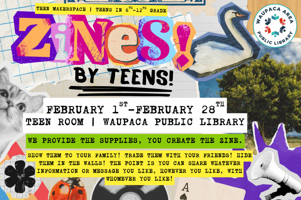 Teens can swing by the Teen Room and make a Zine anytime in February using our supplies. What’s a Zine? Zines are small-batch, DIY publications that provide a powerful platform of expression for underrepresented voices. Show them to your family! Trade them with your friends! Hide them in the walls! The point is you can […]